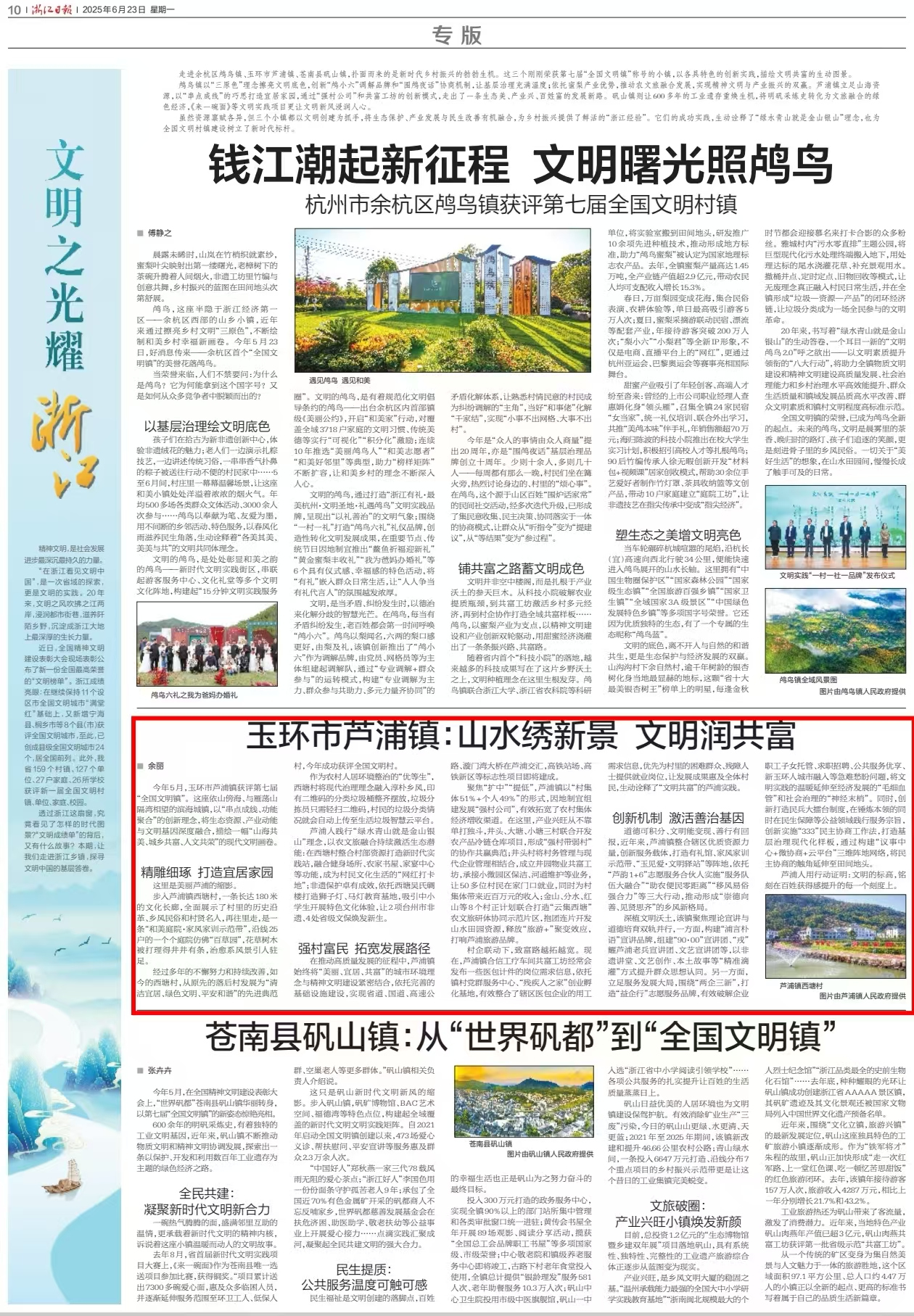 玉环市芦浦镇刚刚荣获第七届“全国文明镇”称号。该镇立足山海资源,以“串点成线”的巧思打造宜居家园,通过“强村公司”和共富工坊的创新模式,走出了一条生态美、产业兴、百姓富的发展新路。芦浦镇以文明创建为抓手,将生态保护、产业发展与民生改善有机融合,为乡村振兴提供了鲜活的“浙江经验”,生动诠释了“绿水青山就是金山银山”理念,也为全国文明村镇建设树立了新时代标杆。